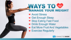 Digital signage takes the content from a centralized location and distributes it at set times throughout locations on digital displays. The content can address different people, from employees and vendors, to customers, to patients. The type of digital content depends on the type of industry and the messaging goals. Wayfinding, announcements, safety processes, updates, advertising, and emergency messages are a few of the many types of digital content companies use.