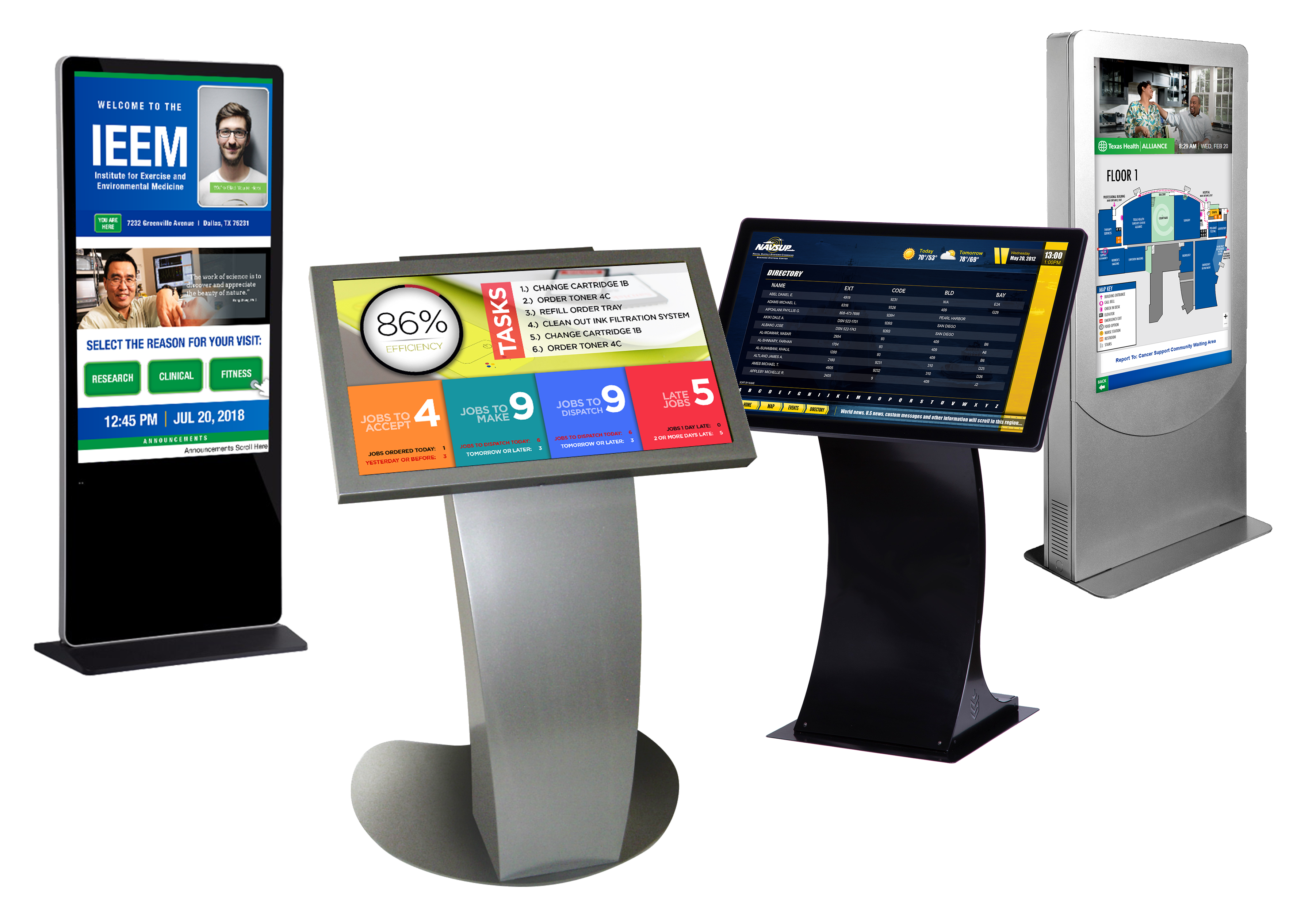 - Healthcare. Interactive directories help patients with wayfinding instead of having to stop at an information desk and risk exposure via a facility employee or volunteer. They can also use touch screens to sign in to the hospital, fill out discharge papers, check visiting hours, and much more.