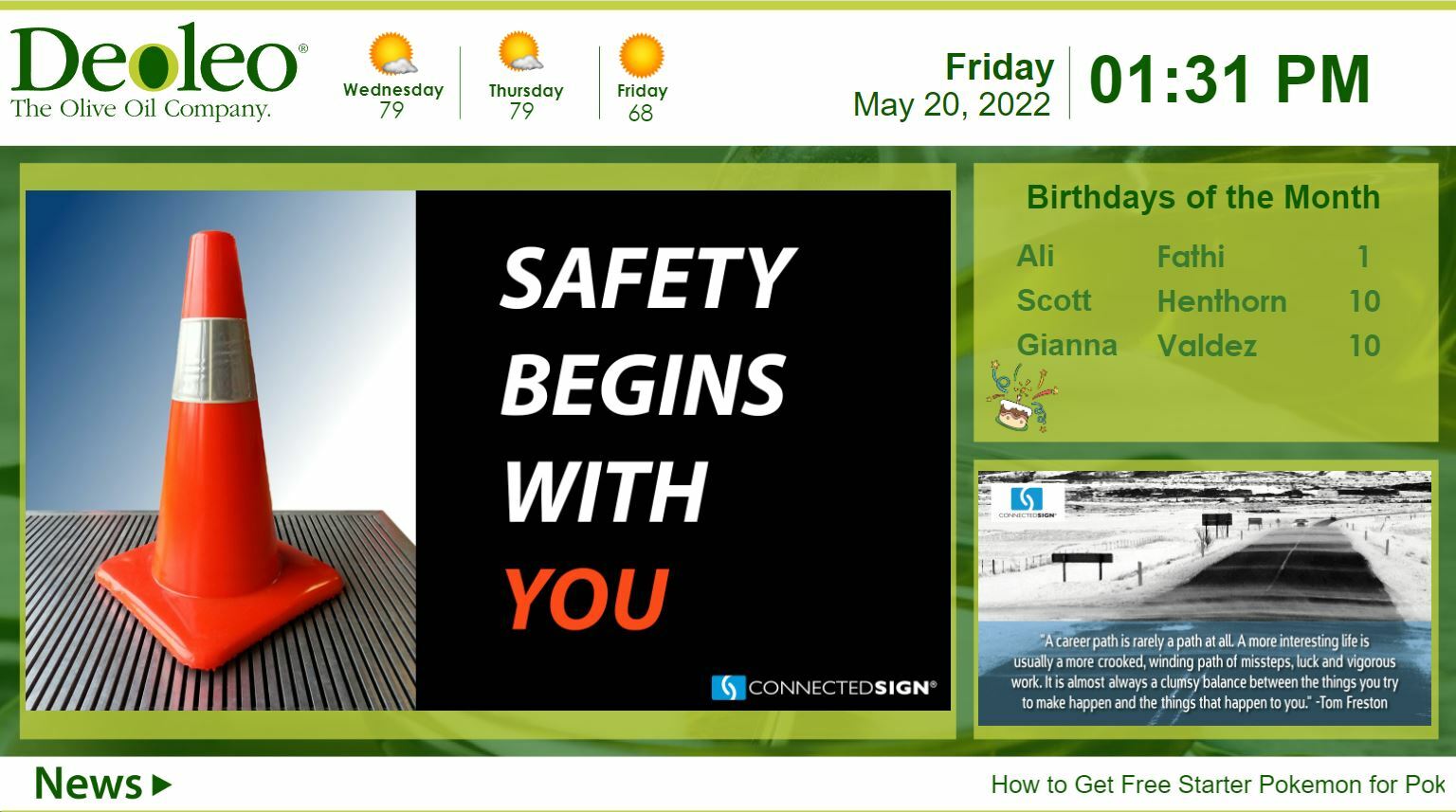 Choose from ConnectedSign’s library of pre-existing templates to engage your teams with Employee Recognition, Special Announcements, Health, Safety, Trivia, and more. Or you can simply create your own templates.