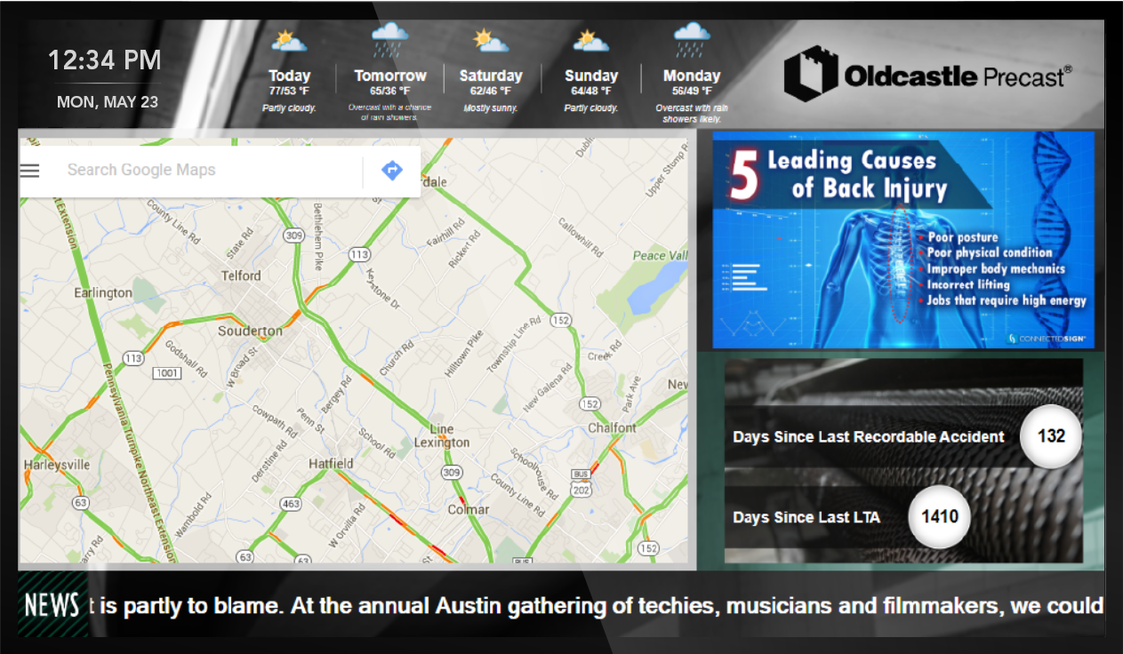 Display real-time data on how many days the floor have been accident free, or acknowledge employees or teams for following correct procedures and reminding everyone of the importance of safety.