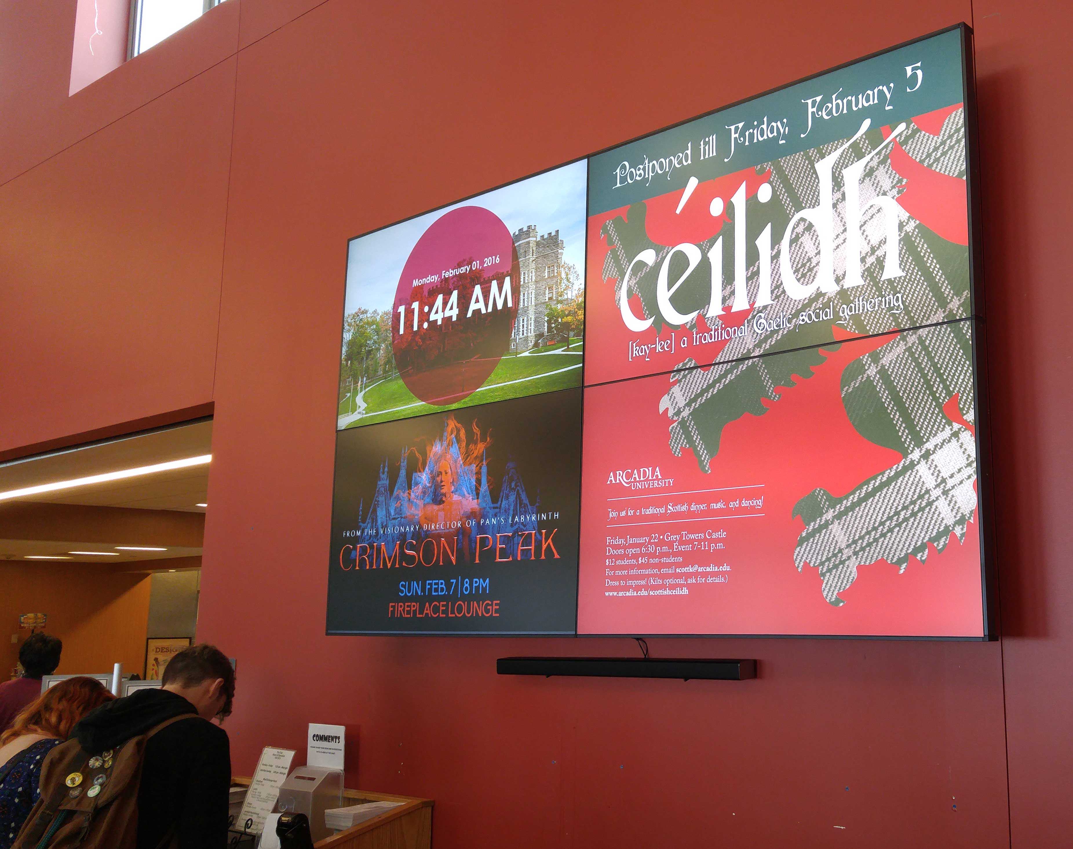 Keep students engaged with the right mix of relevant campus and student-generated content, delivered to digital displays, kiosks and mobile devices throughout your facilities. Automatically display campus event schedules and promote upcoming sports, clubs, academic activities, and more.